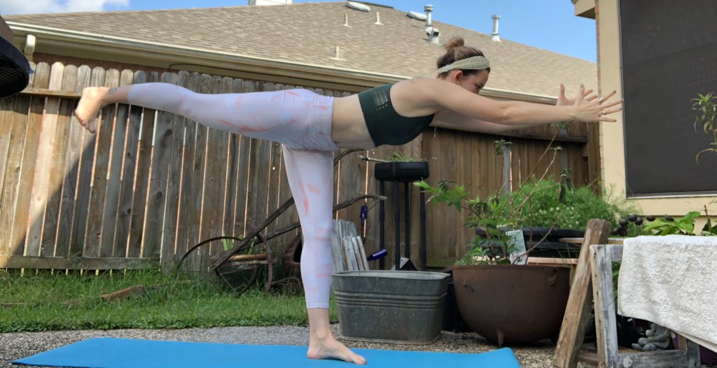In this balancing, fierce pose, feel even more of your power. Square your hips to the mat, keeping your legs and abdomen activated. Warrior 3 is invigorating and energizing so you can feel like yourself again.