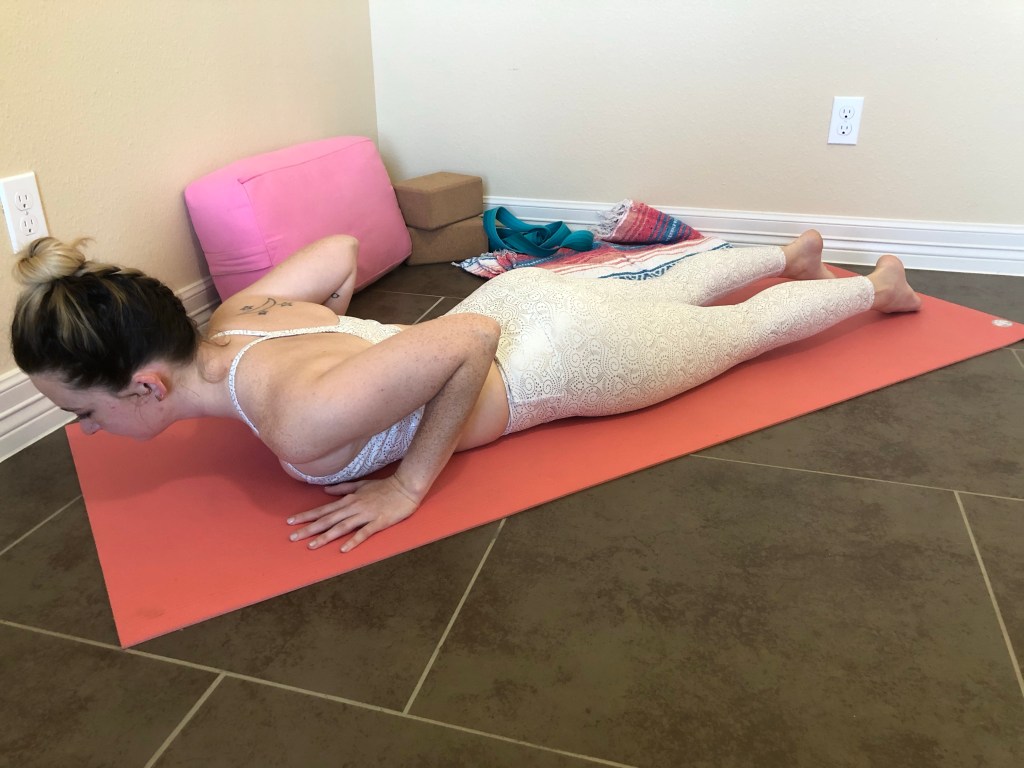 Inhale to cobra, exhale to come back down. Repeat about 3 times.