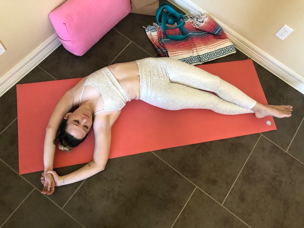 This is one of my favorite poses ever. Start on your belly, extending one arm out to the side. Slowly start to turn towards the outstretched arm. Unroll a little if it feels too intense. Hold for 2-5 minutes.